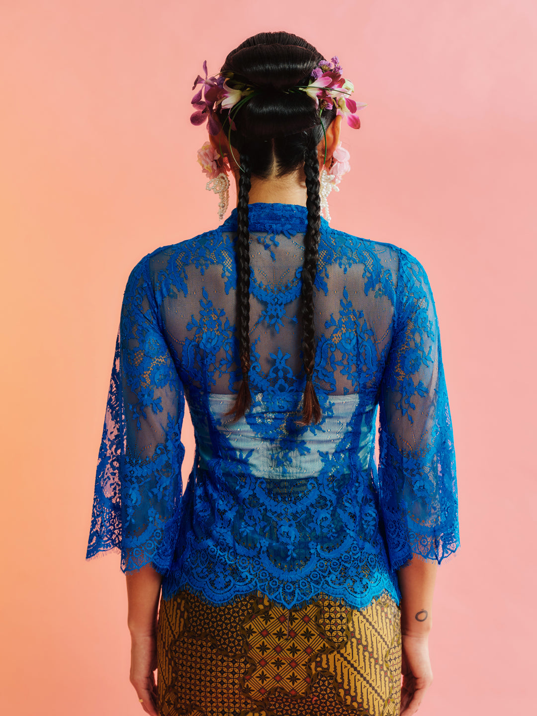 Made from delicate yet structured lace, this kebaya is defined by a fitted silhouette that elegantly frames the body. The detailed lace surface brings a sense of refinement, while the precise cut ensures a sleek and flattering form.