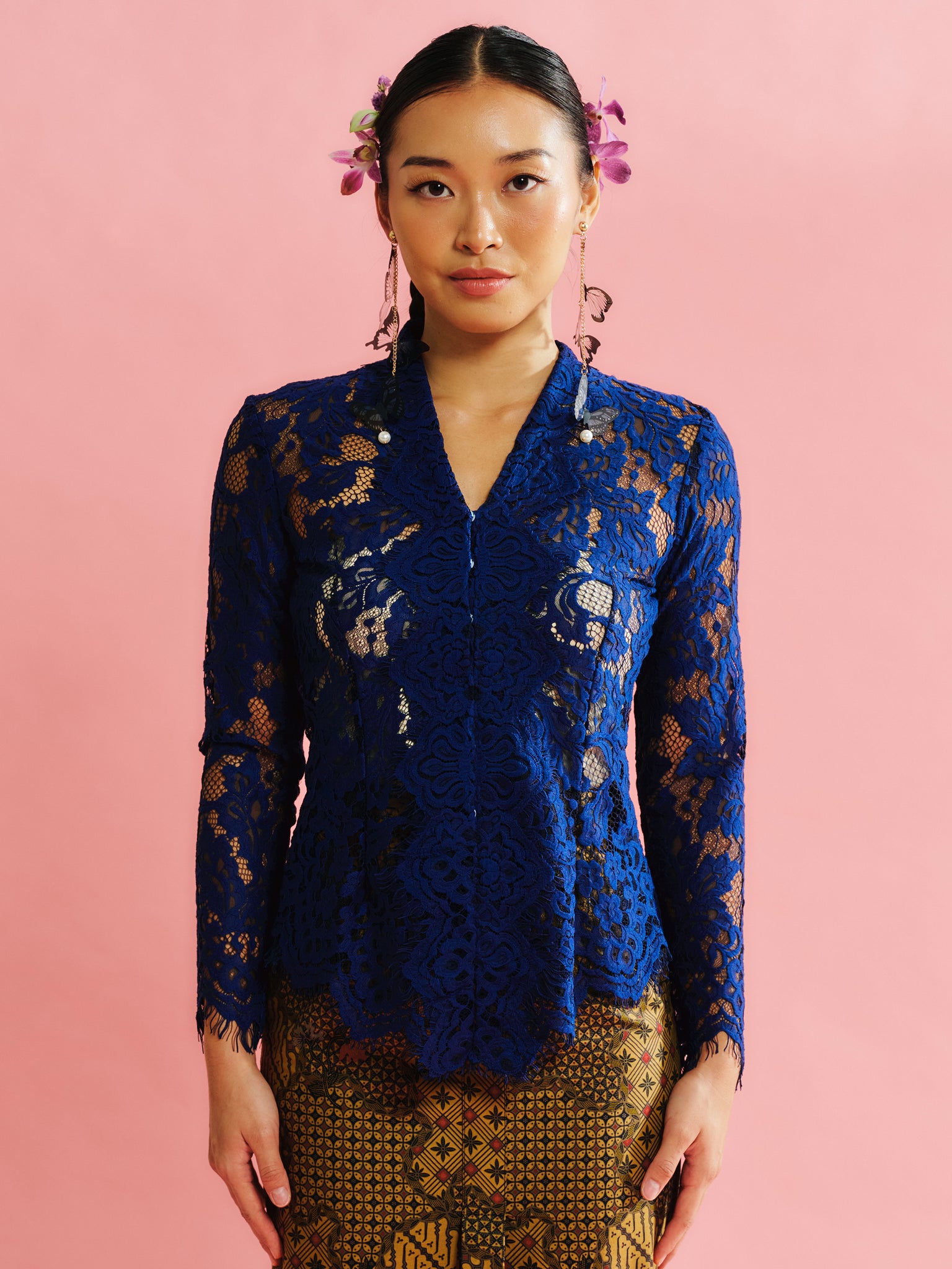 Made from delicate yet structured lace, this kebaya is defined by a fitted silhouette that elegantly frames the body. The detailed lace surface brings a sense of refinement, while the precise cut ensures a sleek and flattering form.